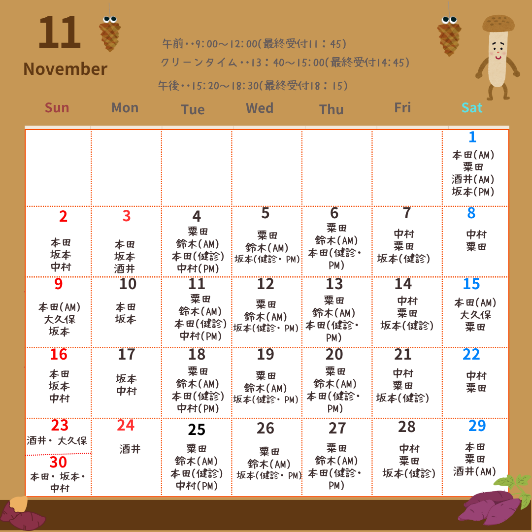 11月外来予定表