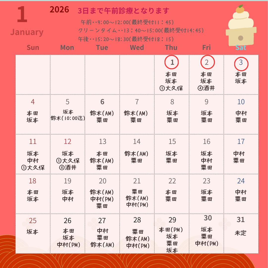 休診日:カレンダーで休診日はご確認ください